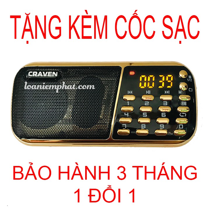 [Tặng Sạc]Loa Craven CR-853 3 PIN nghe cực lâu, nghe nhạc thẻ nhớ, USB, FM Chính Hãng