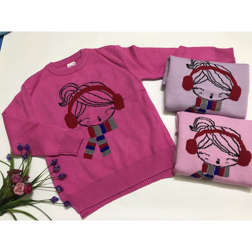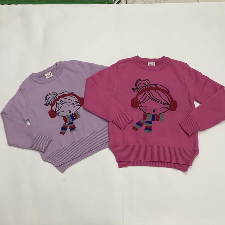 Áo len cổ tròn hình bé nghe nhạc cho bé gái (8-35kg) free ship