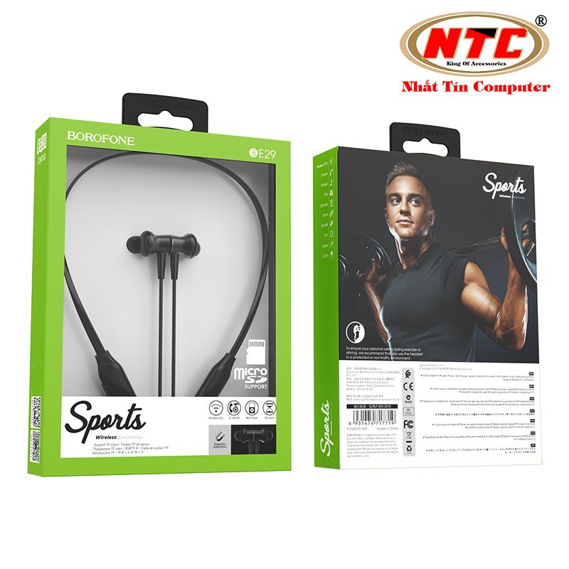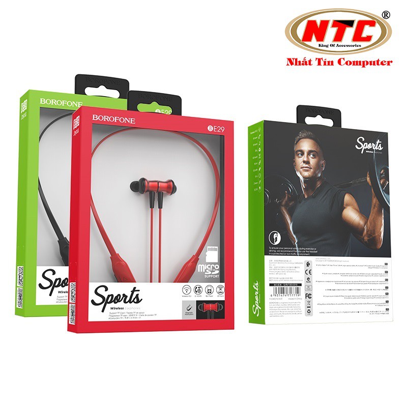 Tai nghe bluetooth thể thao Borofone BE29 Joyous wireless V5.0 Có khe cắm thẻ nhớ, Nghe nhạc và đàm thoại 10H free ship
